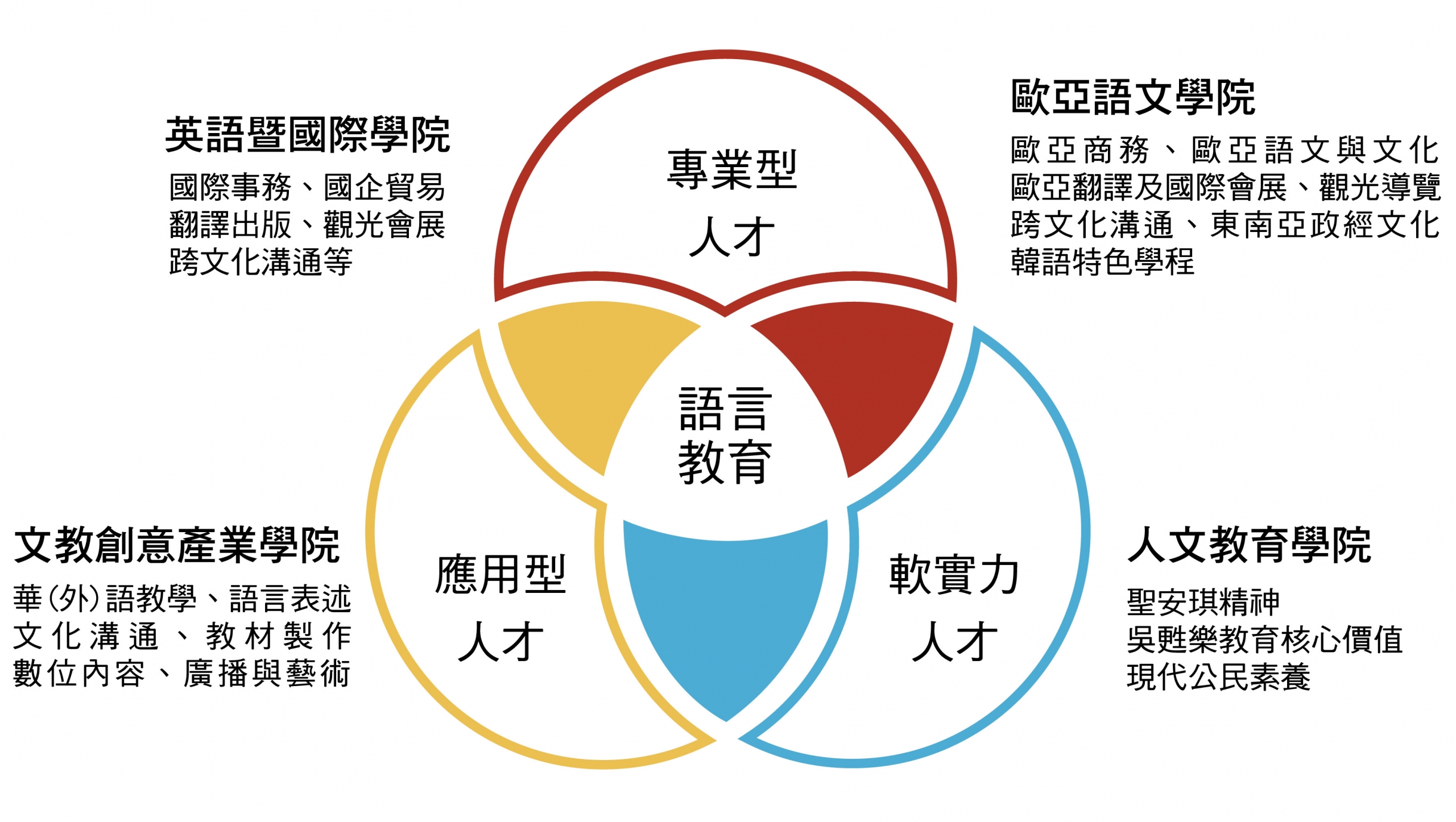 (各學院培育核心能力及人才類型示意圖)